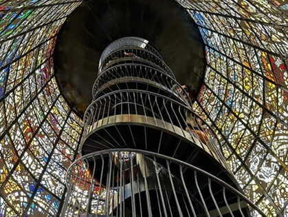 Outside, the park is filled with abstract sculptures by both Japanese and international artists. A standout piece is the Symphonic Sculpture, a towering installation visitors can climb, offering panoramic views from its colorful stained-glass viewing platform. In addition to its permanent collections, the museum hosts rotating exhibitions. For relaxation, there’s also an outdoor